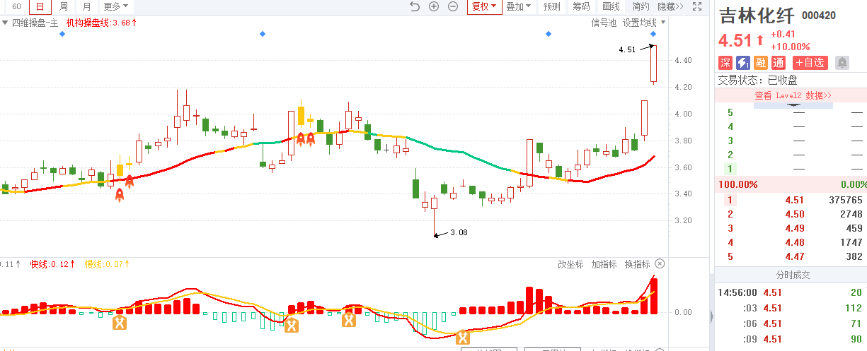 3)吉林化纤-四维操盘-近期出现火箭信号且底部量柱由绿转红