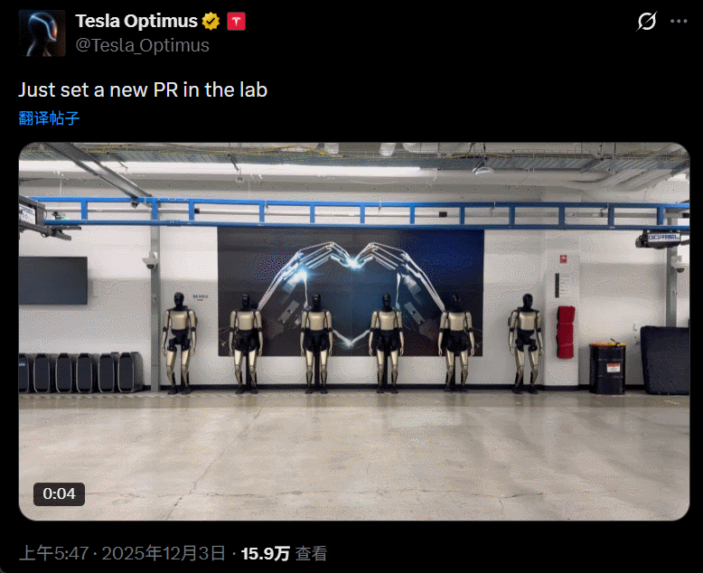 就在发稿前不久,特斯拉Optimus团队在社交媒体上发布了一段机器人跑步的视频,并配文称“刚在实验室刷新了纪录”。