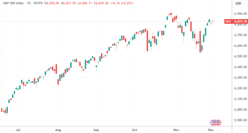 截至收盘,标普500指数涨0.25%,报6829.37点;纳斯达克综合指数涨0.59%,报23413.67点;道琼斯工业平均指数涨0.39%,报47474.46点。