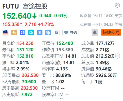 美股异动丨富途控股盘前涨超1% 2025年净利同比增长101.9%