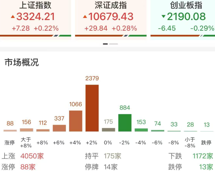 市场情绪,市场热点较为杂乱,个股涨多跌少,全市场超4000只个股上涨;但成交量较上个交易日缩量1891亿,不到1.5万亿。今日共88股涨停,连板股总数10只,17股封板未遂,封板率为83%(不含ST股、退市股)。焦点股方面,机器人板块杭齿前进15天10板、万马股份10天5板,数据中心板块华丰股份8天7板、天正电气4连板。