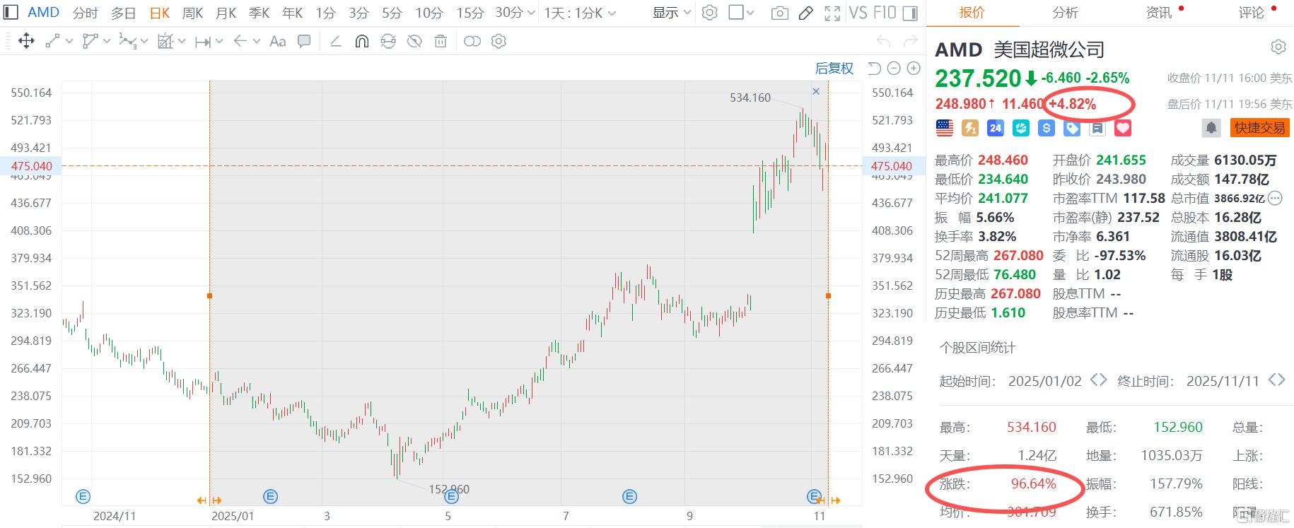 受消息刺激,原本收跌的AMD股价盘后大涨超4%,最新市值3866.92亿美元。