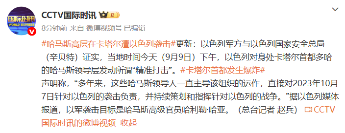 另据央视新闻消息,当地时间9月9日,卡塔尔外交部发布声明,强烈谴责以色列针对哈马斯部分领导人在卡塔尔首都多哈住宅的袭击。声明称以方行动违反国际法,对卡塔尔居民安全构成严重威胁。