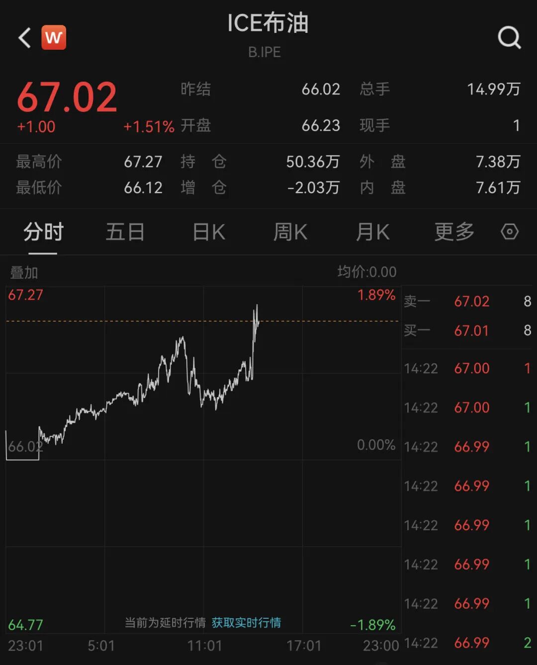国际油价亦走强,截至发稿,NYMEX WTI原油、ICE布油双双涨约1.5%。