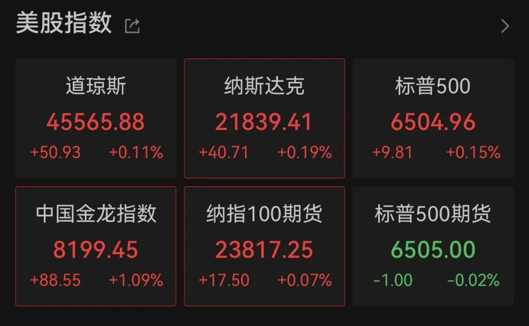 当地时间9月9日,美股三大指数集体高开,截至发稿,道指涨0.11%,纳指涨0.19%,标普500指数涨0.15%。