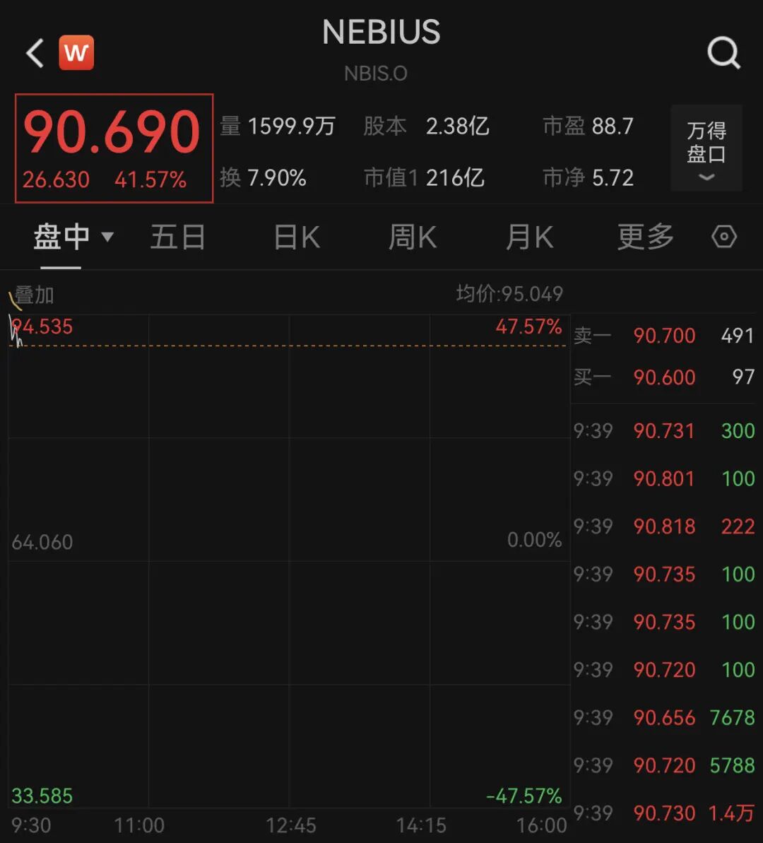 热门个股方面,人工智能公司Nebius涨超41%。消息面上,微软与Nebius签署云协议,基础设施合同金额高达194亿美元。