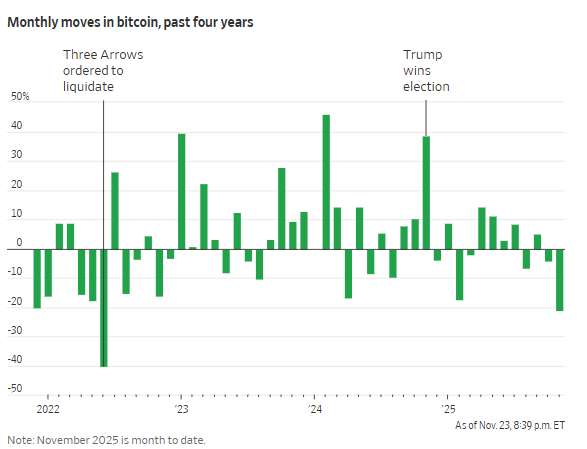 虽然加密货币向来以波动剧烈著称,许多比特币拥趸也始终坚信比特币仍能反弹,但通过出售股票筹资并购买加密货币的所谓“加密货币储备公司”目前正遭遇重挫,这一今年早些时候还曾风靡一时的交易模式,如今似乎正陷入崩塌——以Strategy公司为例,本月股价已下跌37%。