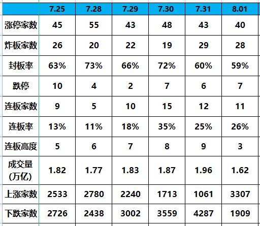 封板率59%,连板率26%。昨天还说找不到比60%的封板率更差的行情了,结果今天就来了一个59%的封板率。这数据只能用卧龙凤雏来形容了。连板率也不高,昨天说过,9板、4板的两个大概率会挂掉,然后连板高度又会压制在3板。连板高度低,赚钱效应就差。