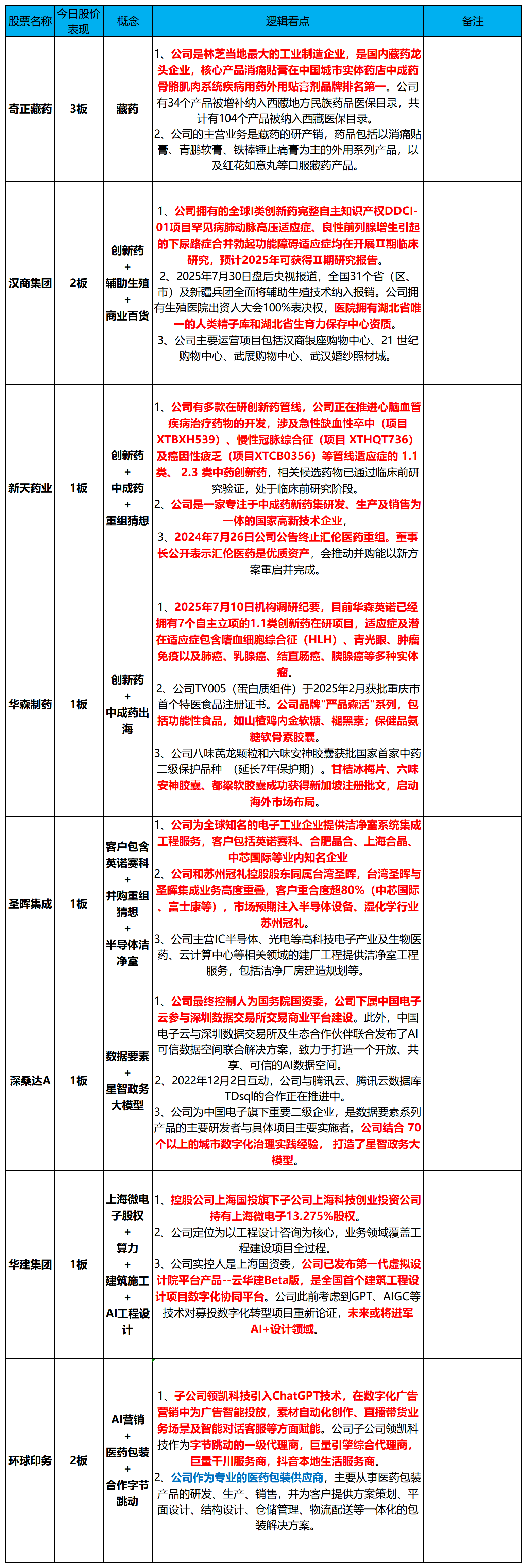 连板高度3板:【胜通能源】一字板没有啥带动效应。【奇正藏药】医药股一般不会超过三板,追涨没啥必要了,只能看他能否复制西藏天路的神奇走势。