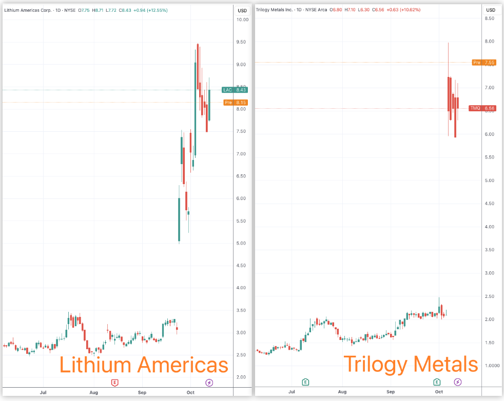 而入股消息传出后,Trilogy Metals、美洲锂业股价都在短时间内翻了3倍,激发了市场的投机热情。