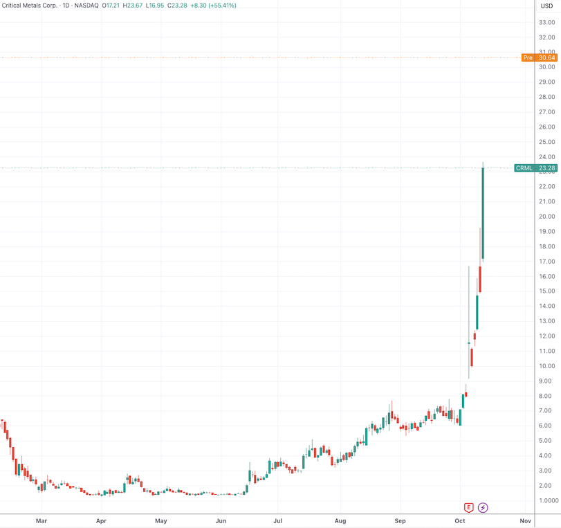 当然,美股稀土板块也在同样的逻辑下持续遭到炒作。截至发稿,Critical Metals周二盘前又涨超20%,美国锑业、Energy Fuels涨幅均超10%。其中多只个股近几日多次出现两位数百分比的涨幅。
