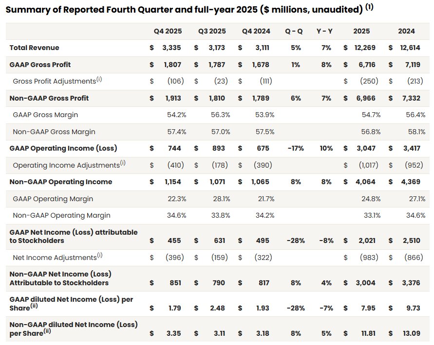 展望未来,恩智浦预计,2026年Q1营收为30.5-32.5亿美元,预测区间中值为31.5亿美元,好于分析师平均预期的30.9亿美元;预计Non-GAAP摊薄后每股收益为2.77-3.17美元,预测区间中值为2.97美元,略好于分析师平均预期的2.95美元。