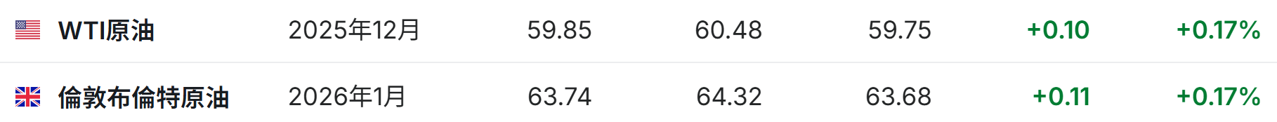 3. 截至发稿,WTI原油涨0.17%,报59.85美元/桶。布伦特原油涨0.17%,报63.74美元/桶。