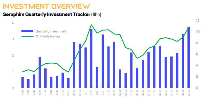 周五(10月10日),太空投资公司Seraphim Space发布的报告显示,今年第三季度,全球在太空领域的总投资达到创纪录的35亿美元。