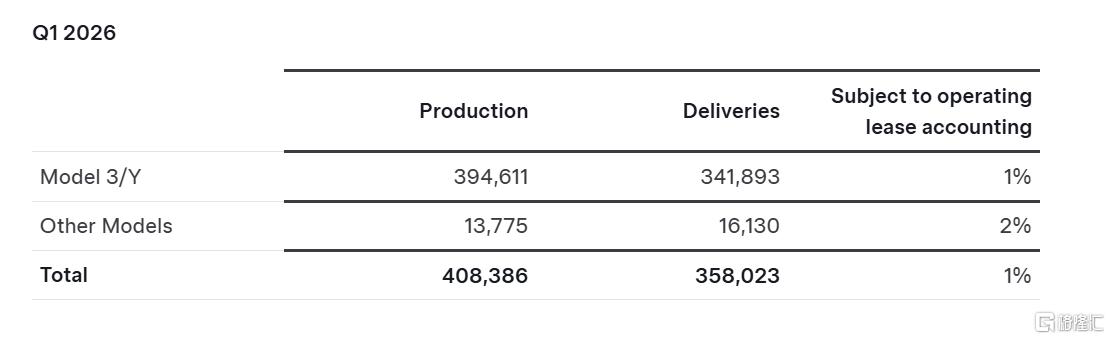 当地时间周四,特斯拉公布数据显示,2026年第一季度交付量为35.8万辆,这也是其连续第二个季度未达到华尔街预期。