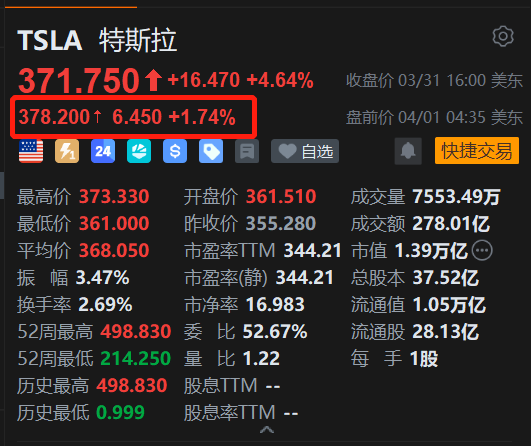 美股异动丨多重利好叠加,特斯拉盘前继续反弹约2%