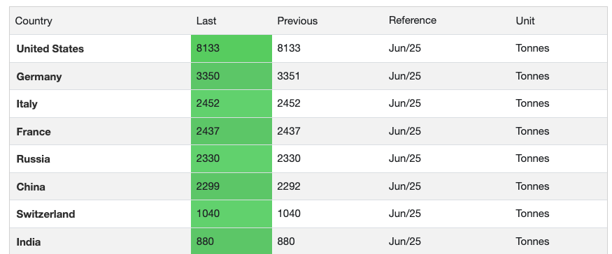 统计显示,美国政府持有全球最大的8133吨黄金储备,大致相当于2至4位德、意、法三国储备之和。