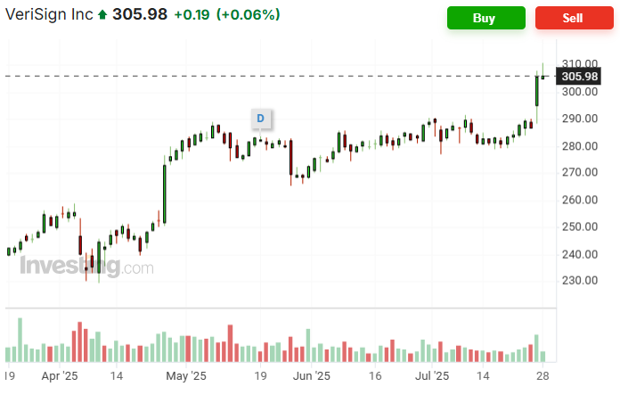 此消息一出,VeriSign股价在盘后交易中下跌了5.9%。