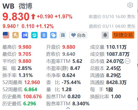 美股异动丨微博盘前续涨超1% 接入Kimi Claw