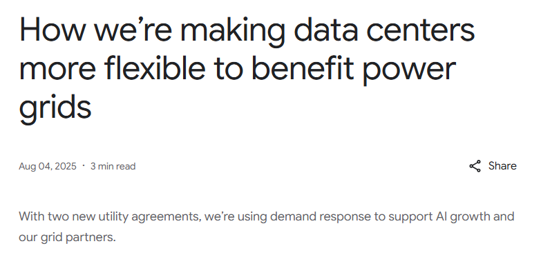 “随着我们系统新增大量负载,与客户合作以有效管理为其提供服务所需的发电和输电资源至关重要。谷歌地负载灵活性,将成为满足其未来能源需求的宝贵工具。”