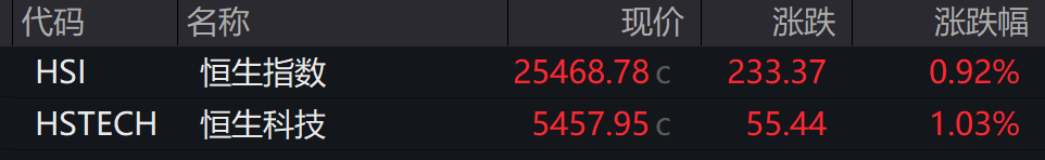 港股:截至收盘,恒生科技指数最终收涨1.03%,恒生指数上涨0.92%