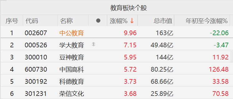 A股教育股拉升,中公教育封板