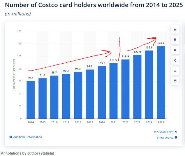 这正促使消费者在购物时做出更精明的选择,例如增加在好市多的购买品类和数量。这一点可以从好市多的会员统计数据中得到印证。