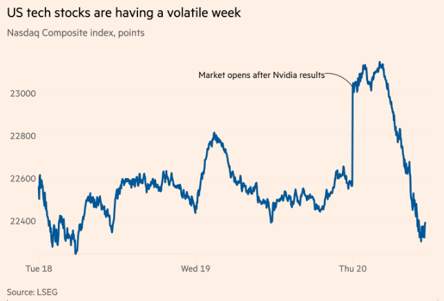 美国股市周四创下四月以来最剧烈的盘中反转,尽管盘初随英伟达炸裂财报高开,但基准的标普500指数此后却一路跌至了两个多月来的最低点——与此同时,困惑的华尔街交易员们正抓耳挠腮地琢磨,究竟是什么引发了这波巨震行情?