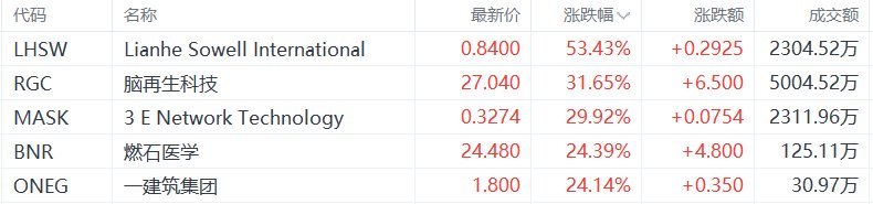 美股异动丨Lianhe Sowell International涨53.43%,为涨幅最大的中概股