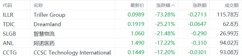 美股异动丨Triller Group跌73.28%,为跌幅最大的中概股
