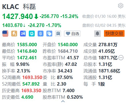 美股异动丨科磊盘前续跌逾1% 第三财季业绩指引不及预期
