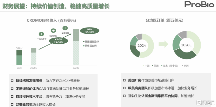 根据公司规划,未来将聚焦欧美市场开发,战略性扩充,对于欧美市场的覆盖;打造专业技术平台(CAR-T技术平台、AI发现平台等);开发BIC CD3平台和TCE分子。CRDMO服务收入预计2025-2028E收入增速复合增速25-30%。