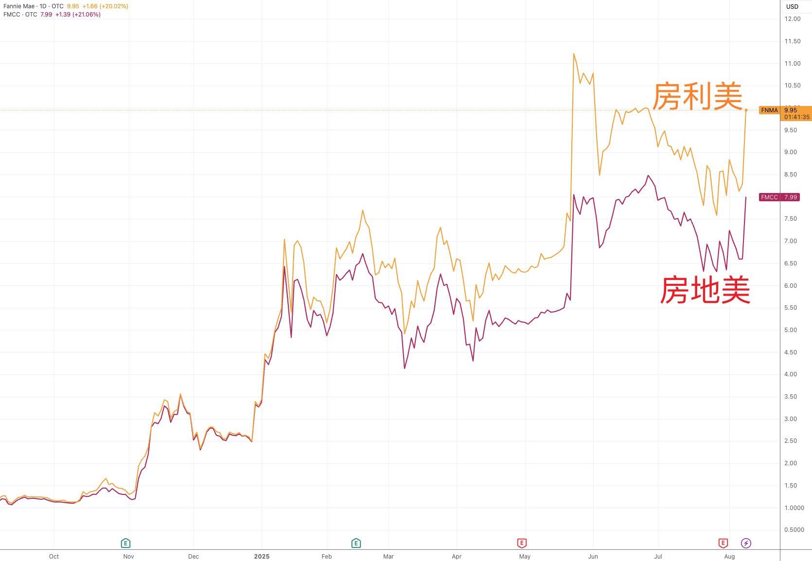 截至发稿,受到市场传闻影响,房利美、房地美在OTC市场均大涨20%。与去年底知名富豪、特朗普支持者比尔·阿克曼公开传播“两房”重新上市时相比,股价分别翻了近4倍和3倍。