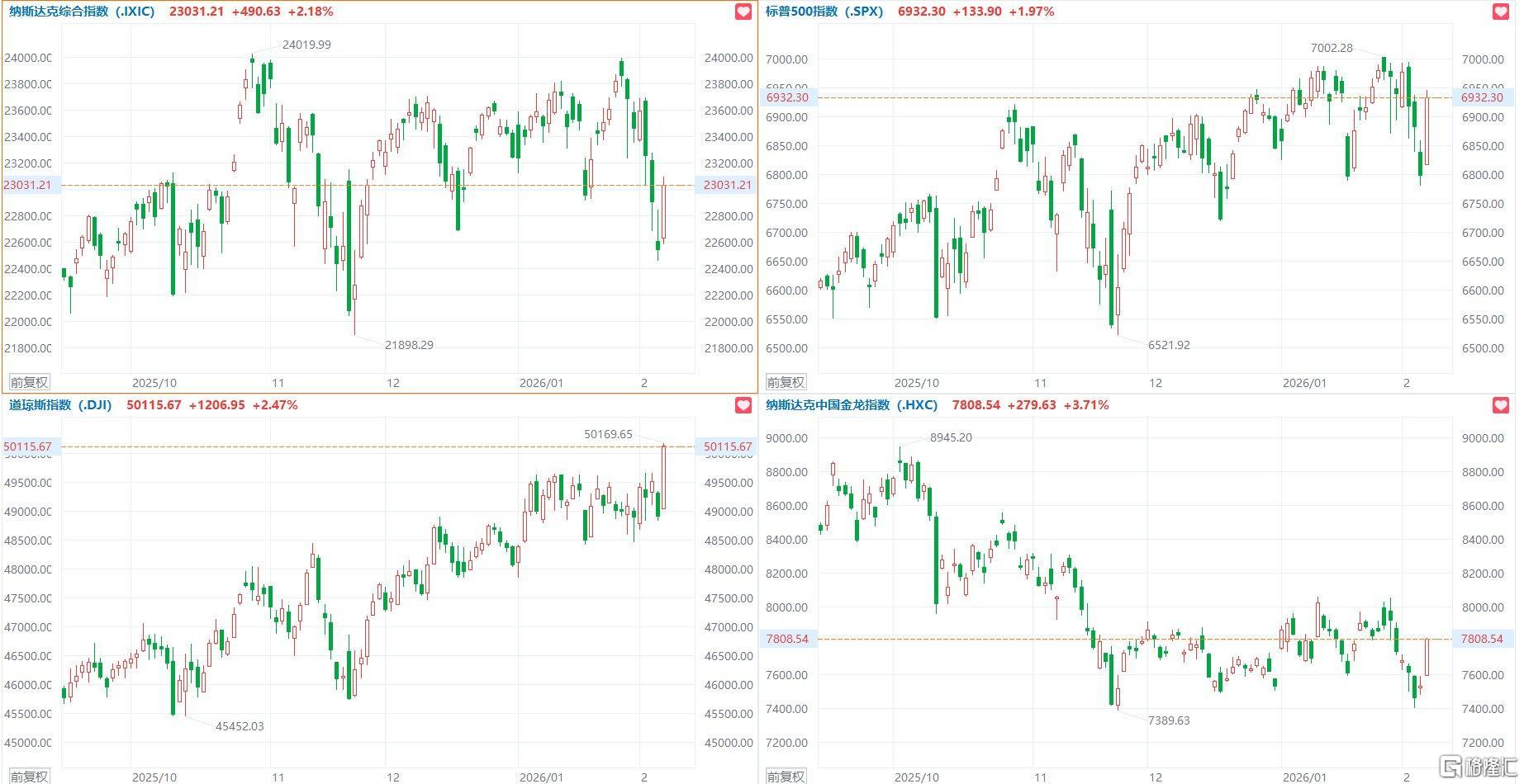 当地时间周五,标普500指数和纳斯达克指数强劲反弹,而道指在金融与周期股带动下强势上行,首次收于50000点上方。