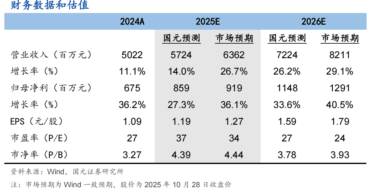国元证券预测公司25-26年营收为57.24/72.24亿元,归母净利为8.59/11.48亿元,对应PE为37x/27x,维持“买入”评级。