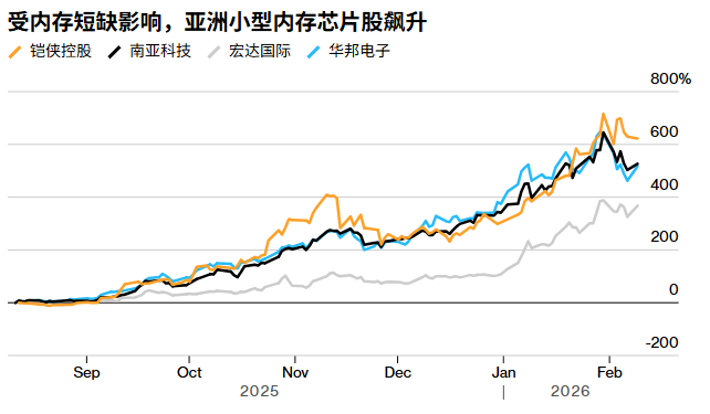 因此,内存芯片制造商已成为科技股中突出的赢家。自9月底以来,韩国SK海力士公司(英伟达公司HBM的主要供应商)股价在首尔上涨逾150%。在较为普通的芯片制造商中,日本铠侠控股公司和中国台湾南亚科技公司股价同期各上涨约280%,而美国闪迪公司(SNDK.US)在纽约股价上涨逾400%。