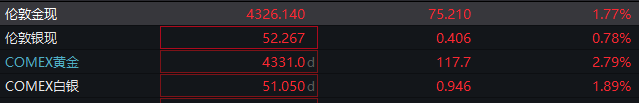 大宗商品方面,国际金价北京时间10月20日晚间拉升走高,截至发稿,伦敦金现涨超1.7%,站上4325美元/盎司,COMEX黄金涨超2.7%,站上4330美元/盎司。