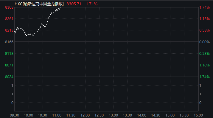 中概股方面,纳斯达克中国金龙指数震荡走高,截至发稿涨超1.7%。