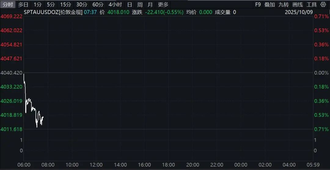 10月9日亚洲早盘,国际金价跳水,截至发稿,COMEX黄金期货跌超0.7%。