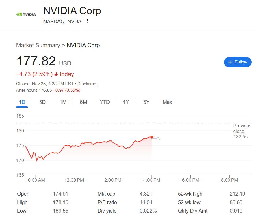 这一消息对市场格局的影响立竿见影。英伟达的重挫波及整个科技板块,其关键合作伙伴超微电脑(SMCI)周二早盘曾跌超6%,其持股的数据中心运营商CoreWeave早盘一度跌10%,连英伟达的主要竞争对手AMD盘中也曾跌近9.7%,到收盘,分别跌约2.5%、3.1%和近4.2%。