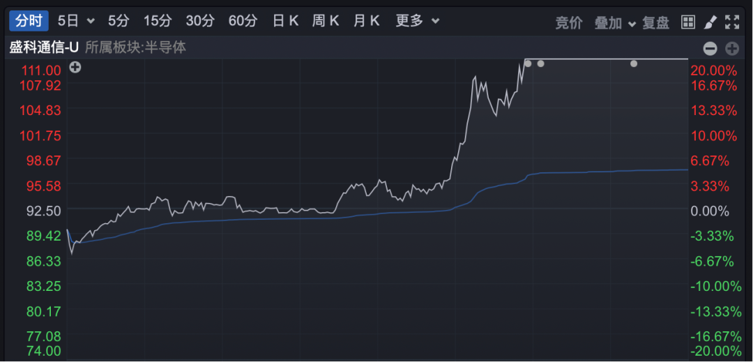 市场热点方面,半导体概念午后放量拉升,板块指数大涨逾3%,创3年半新高。盛科通信由跌转涨,下午1点半左右放量直线拉升,快速20%涨停,艾为电子、芯原股份、凯华材料等纷纷跟涨。