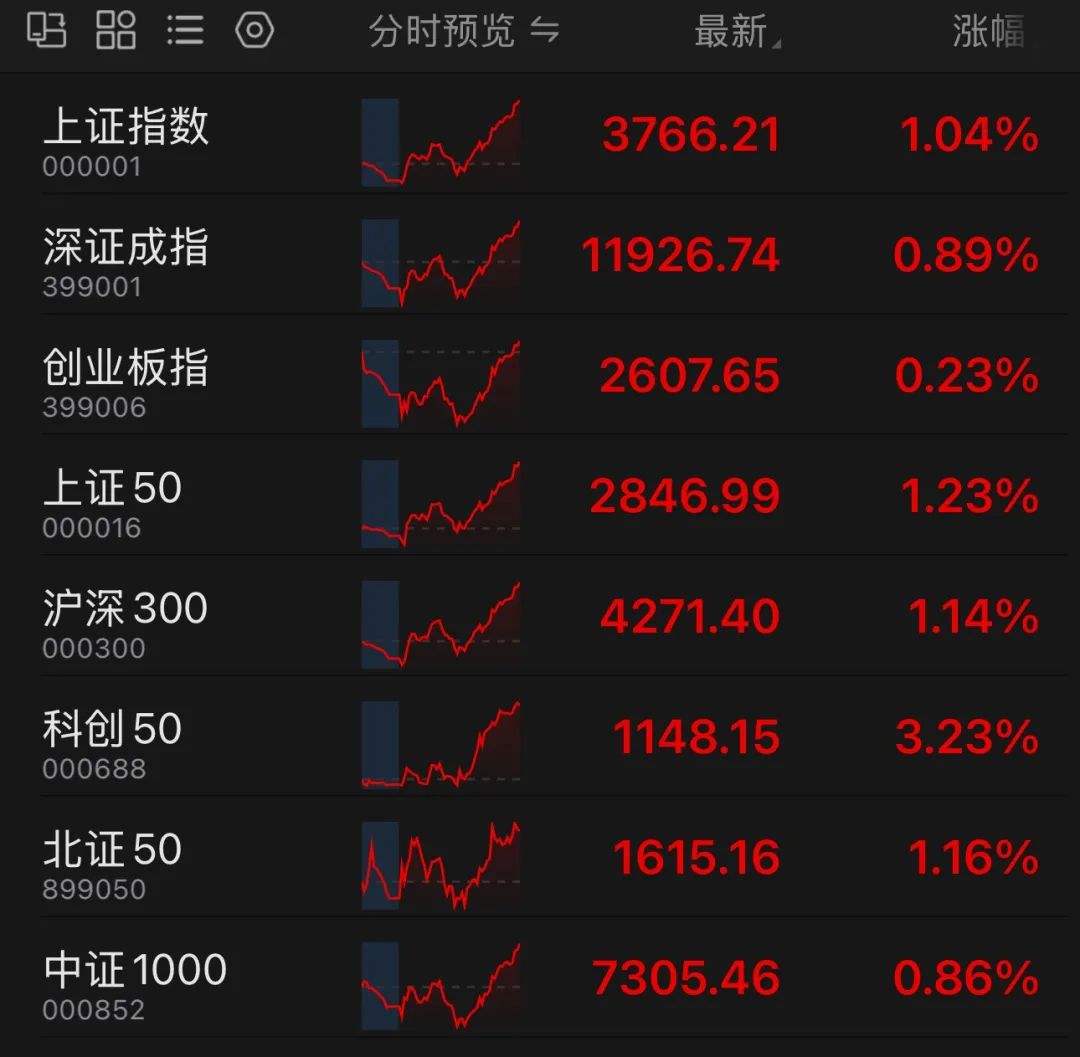 今日,A股早盘低空震荡,午后再度强势拉升,上证指数再创10年新高,北证50历史首次收在1600点之上,深证成指、科创50等也纷纷创出多年新高,成交小幅萎缩至2.45万亿元。