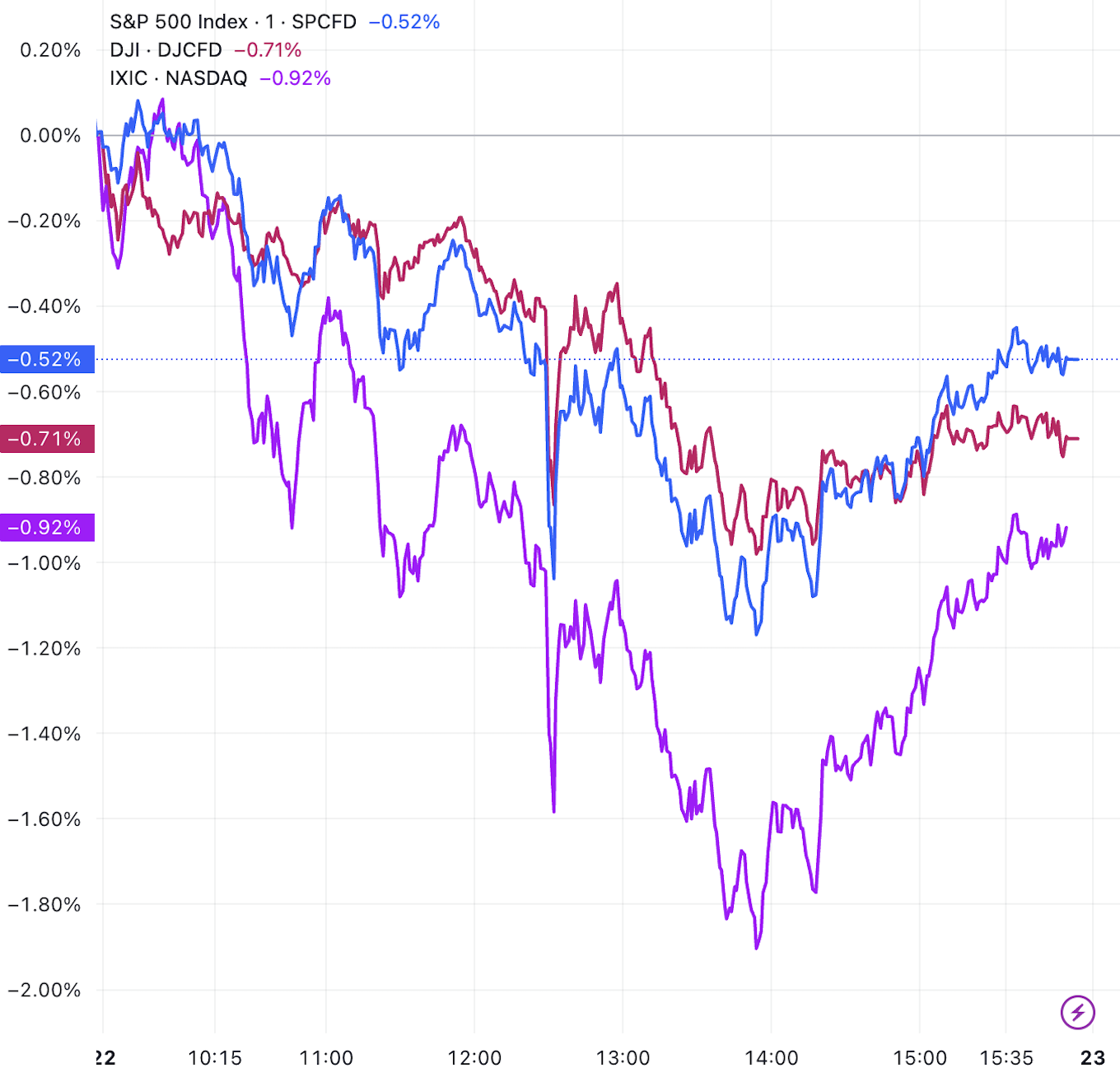 (三大指数日内走势图,来源:TradingView)