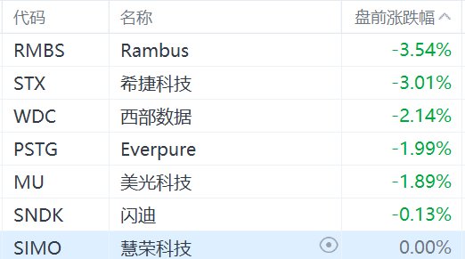 美股存储芯片概念股盘前普跌,西部数据跌超2%