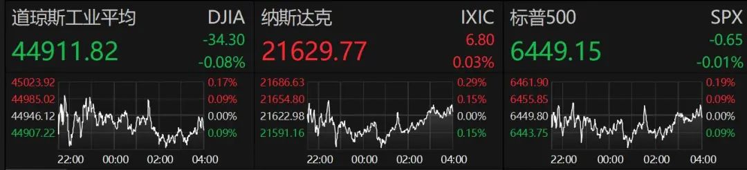 周一美股三大指数小幅震荡,至收盘几乎持平,纳指涨0.03%,标普500指数跌0.01%,道指跌0.08%。