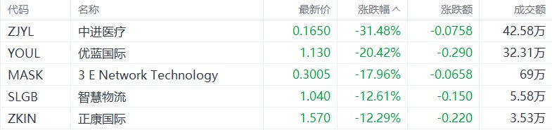 美股异动丨中进医疗跌31.48%,为跌幅最大的中概股