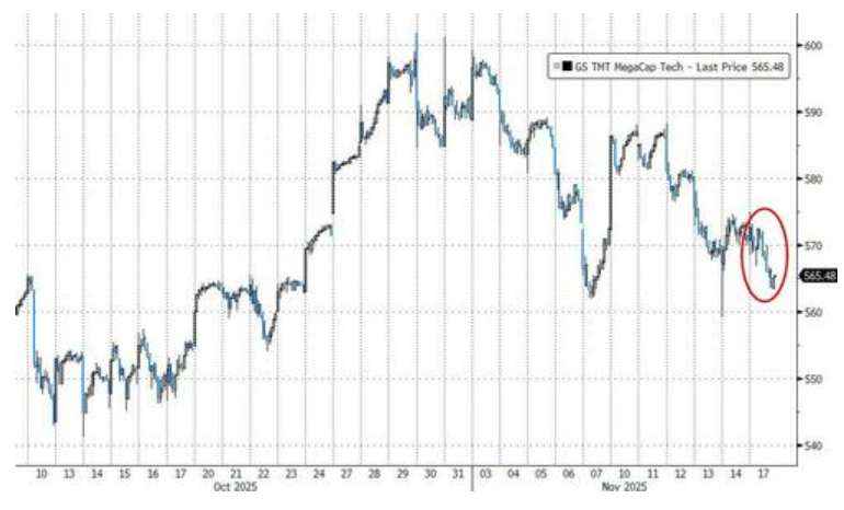 数据显示,追踪大型科技股的指数已跌至近一个月来的最低收盘点位。