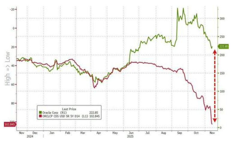 其中,CoreWeave的利差大幅飙升,而甲骨文的利差走势被市场视为“不祥之兆”。