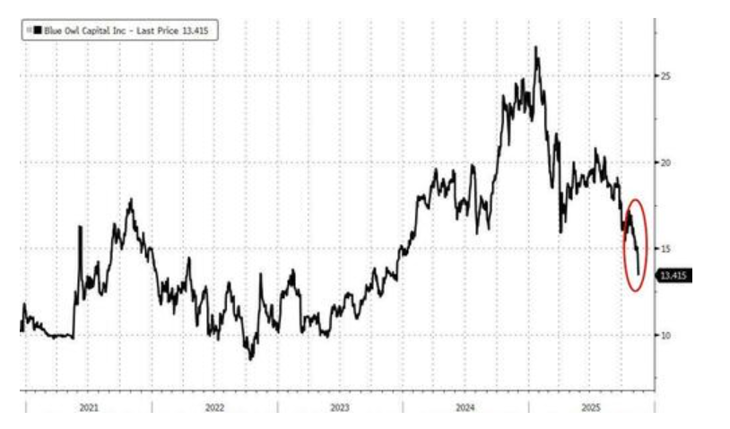 此外,对私募信贷市场的担忧也浮出水面。资产管理公司Blue Owl因旗下非交易型基金限制投资者赎回而股价大跌。