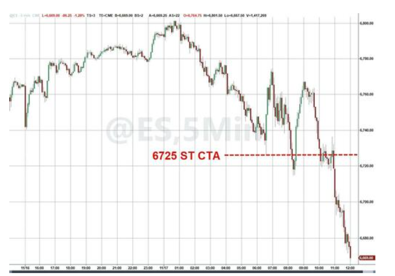 高盛集团的Lee Coppersmith此前指出,跌破6725点水平可能促使被称为CTA(商品交易顾问)的量化趋势跟踪基金从买家转为卖家。